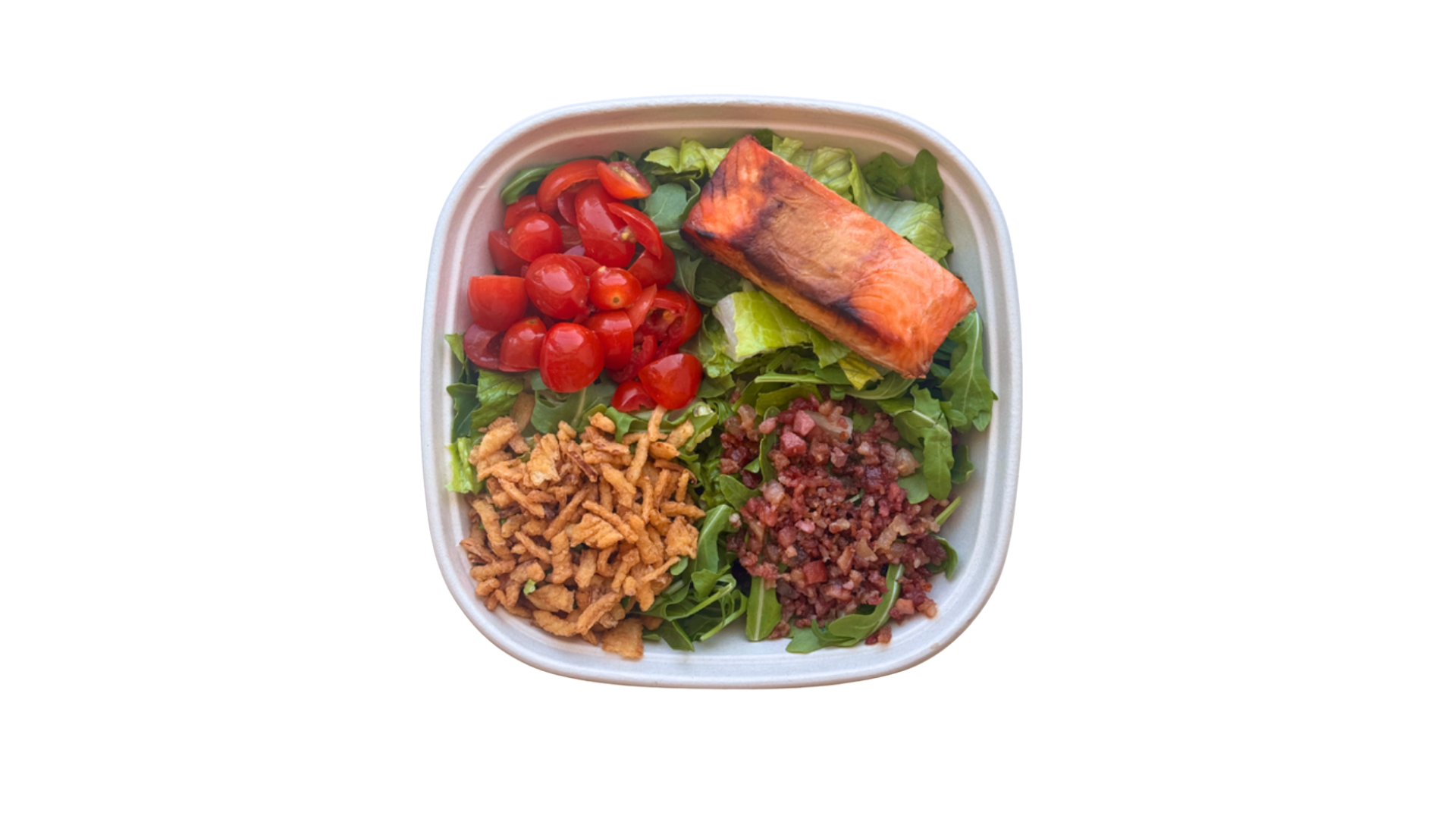 Romaine, Arugula, Miso-Glazed Salmon, Bacon, Grape Tomatoes, Crispy Onions, Buttermilk Ranch